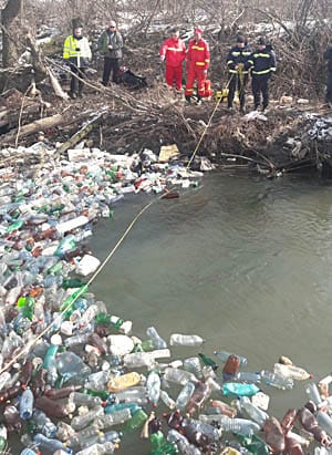 Fotografiile surprinse de reprezentanţii ISU Hunedoara de la intervenţia din 6 martie, de scoatere din apă a unui bărbat înecat din Pârâul Cerna, au evidenţiat şi gunoaiele adunate pe malurile apei curgătoare.
