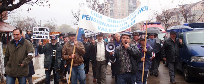 Aproximativ 200 de pensionari minieri din întreaga Vale a Jiului au mărşăluit pe străzile din municipiul Petroşani, cerându-şi drepturile, câştigate încă din 1977, după greva minerilor din Valea Jiului, respectiv cota de energie electrică subvenţionată şi raţia anuală de cărbune.