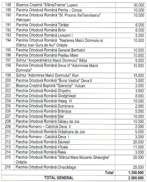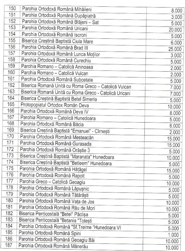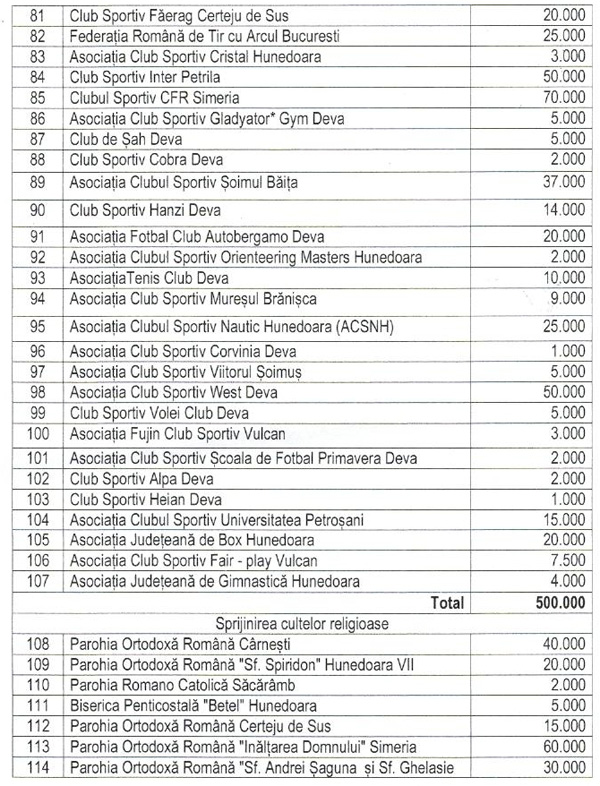 Vă prezentăm, în continuare, lista cu asociaţiile de tineret, cluburile sportive şi unităţile de cult religioase care vor beneficia de finanţare din partea Consiliului Judeţean Hunedoara.