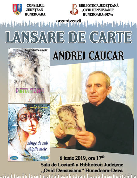 Biblioteca Judeţeană „Ovid Densusianu” Hunedoara-Deva, cu sprijinul Consiliului Judeţean Hunedoara, organizează în ziua de 6 iunie 2019, ora 17,00, la Sala de Lectură a Bibliotecii Judeţene, un eveniment cultural destinat iubitorilor de poezie: poetul Andrei Caucar îşi va lansa două volume de versuri.
