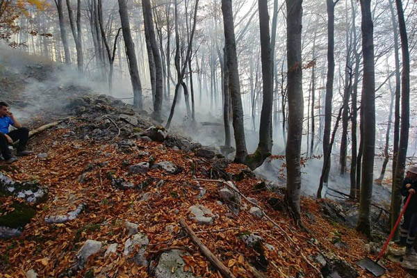 Pompierii Detaşamentului Petroşani, lucrători ai Ocolului Silvic Pui şi jandarmi hunedoreni acţionează în pădurea aflată pe teritoriul satului Petros, la graniţa Parcului Natural Grădiştea Muncelului Cioclovina, pentru stingerea unui incendiu ce a afectat litiera şi vegetaţia de la baza pădurii.