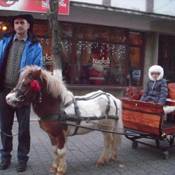 Copiii devenilor care vor vizita Târgul de Crăciun din centrul oraşului au posibilitatea să încerce ceva inedit – o plimbare cu o sanie adaptată vremii de afară (pe roţi sau pe tălpi, când este zăpadă), trasă de un ponei. Sau, de ce nu, chiar o plimbare în şaua căluţului. Este oferta pe care o pune la dispoziţia micuţilor Robert Moroşanu, proprietarul unui ponei pe nume Dodo, şi care a venit la târg din propria iniţiativa. Este al doilea an în care hunedoreanul participă la Târgul de Crăciun de la Deva, anul trecut, bucurându-se de mult succes în rândul copiilor, care au stat la coadă pentru a aştepta să se plimbe cu atelajul tras de ponei.