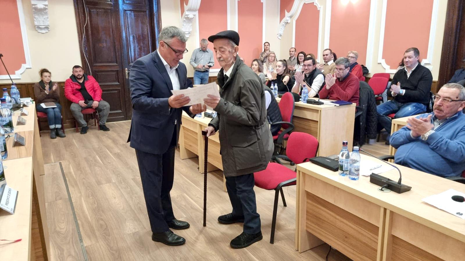 De ziua lui, primarul Florin Oancea l-a premiat pe un devean care a ajuns la vârsta de 100 de ani.