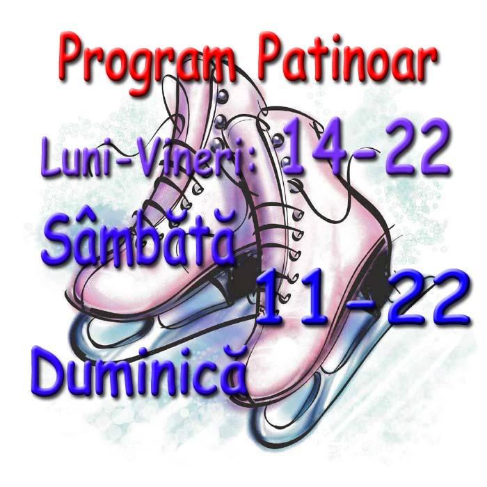 Potrivit comunicatului Primăriei Hunedoara, orarul de funcționare al Patinoarului din municipiu de pe Cerna a fost modificat începând de astăzi, luni, 14 ianuarie 2013. Astfel patinoarul din Hunedoara va fi deschis de luni până vineri între orele 14-22, iar sâmbăta și duminica între orele 11-22. Prețul biletului de intrare este de 10 lei. (M.C.)