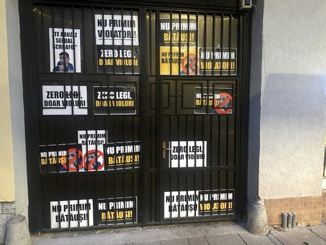 Protestatarii au avut parte de o surpriză, pentru că poarta de la sediul PSD Hunedoara a fost plină de mesaje de genul: „Nu primim violatori!”, Nu primim bătăuși!”.