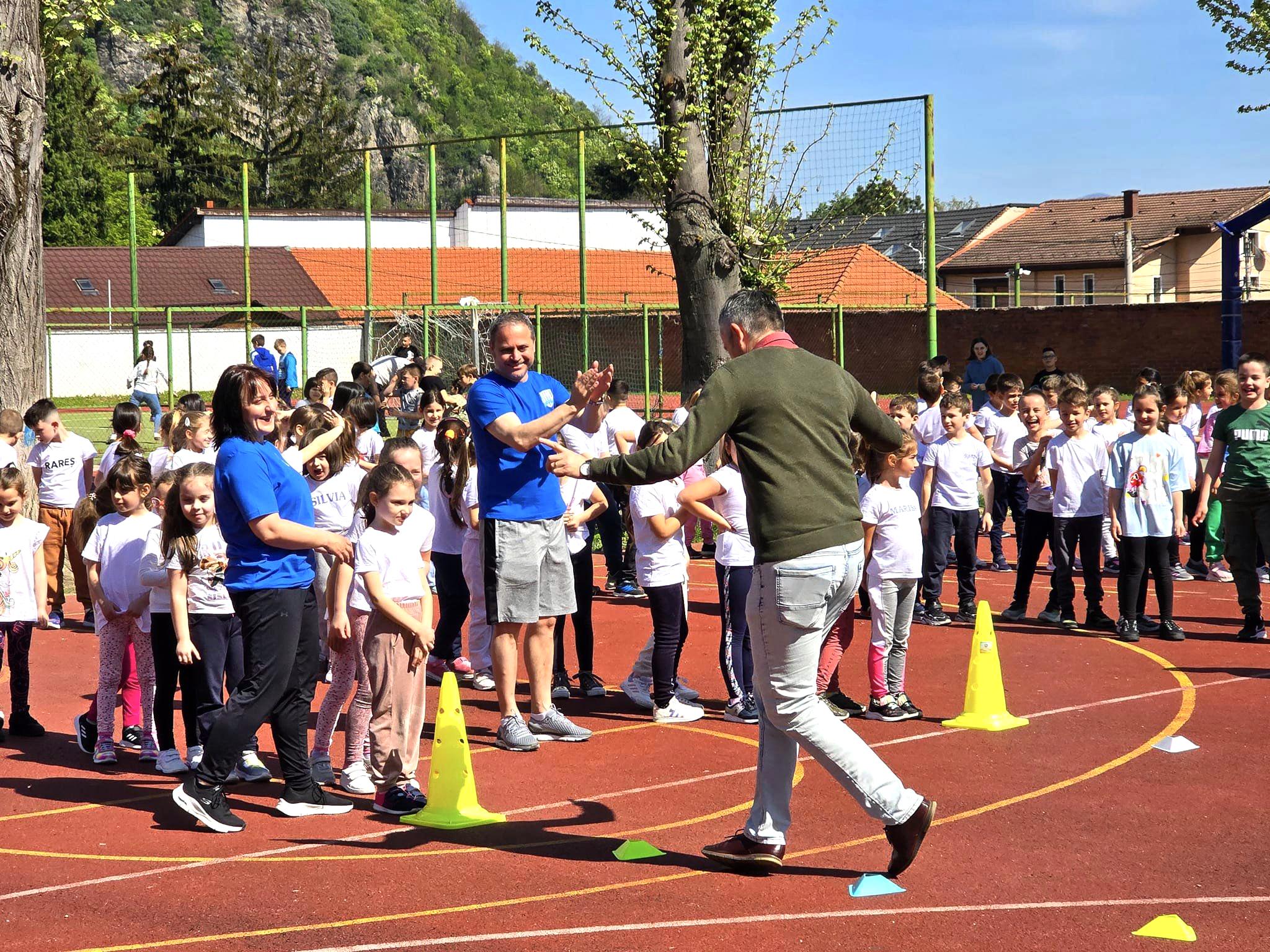 Peste 120 de elevi și preșcolari de la Colegiului Național Pedagogic „Regina Maria” au luat parte la această acțiune plină de entuziasm și energie! Sub îndrumarea Ginei Gogean, fosta mare gimnastă, dar și a unor studenți, copiii au avut parte de o experiență minunată, învățând și distrându-se în același timp! Preșcolarii s-au străduit să facă o încălzire pregătită special pentru “marea performanță”, iar apoi au încercat să parcurgă un traseu plin de surprize. Mai precis, au trecut printre jaloane, au urcat pe o bârnă așezată la nivelul solului, dar încercarea de a trece pe lungimea ei cu brațele întinse nu a fost chiar foarte ușor, dovadă că nici cadrele didactice nu au reușit fără să…cadă de pe bârnă.