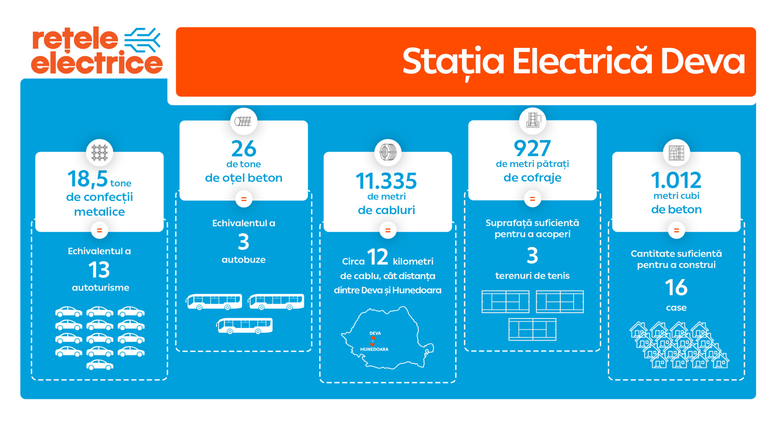 Deva – Rețele Electrice România, parte a grupului PPC în România, a finalizat lucrările de modernizare pentru stația 110/20kV IRUM, din municipiul Deva, pentru a eficientiza activitatea de distribuție a energiei electrice în zonă. Investiția, în valoare totală de peste 19 milioane lei a fost realizată integral din surse proprii, ca parte a strategiei companiei de a dezvolta rețeaua de distribuție a energiei electrice având în vedere principiile de calitate și reziliență.