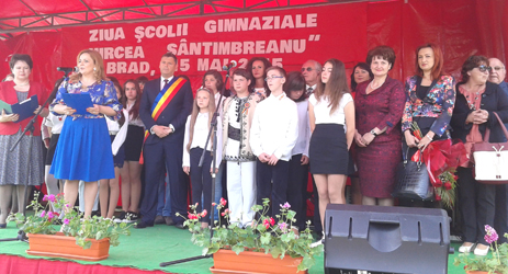 „Celebrăm împreună 14 ani de când, prin inspiraţia unor distinşi colegi, Vasile Almăşan şi Elena Petruţ, şcoala noastră a primit numele de Şcoala Generală «Mircea Sântimbreanu». Istoria acestei instituţii începe în anul 1962, când şi-a deschis pentru prima dată porţile, când a sunat pentru prima dată clopoţelul şi voci cristaline au răsunat pe coridoare. Ne-am transformat treptat, însă nu ne-am pierdut niciodată identitatea. An de an, ne promovează elevii premianţi la nivel naţional, îndrumaţi de un colectiv extraordinar de dascăli. Cred că este momentul să adresez din suflet, cu toată sinceritatea, mulţumirile mele colegilor. În şcoală, învaţă 530 de copii, avem învăţământ preşcolar, primar şi gimnazial şi inclusiv grădiniţă cu program prelungit, care s-a înfiinţat în anul 2012. Deşi banii sunt puţini, mă bucur enorm că am reuşit să reabilităm toate cele trei clădiri care aparţin unităţii de învăţământ”, a declarat pentru MESAGERUL HUNEDOREAN profesoara Ancuţa Miheţ, directorul Şcolii Generale „Mircea Sântimbreanu”, din Brad. La eveniment au participat primarul Bradului, deputatul Natalia Intotero şi alte oficialităţi.