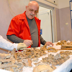 „Resturile scheletare sunt atât de origine umană, cât şi animală. Acestea au o vechime apreciabilă, de zeci de ani, iar felul în care au fost găsite, împreună cu resturi ceramice, atestă faptul că nu este vorba de nici o infracţiune. Totodată, ele nu aparţin unui singur schelet, deoarece sunt mai multe femure, mai multe mandibule”, a declarat medicul Dan Mărculescu (foto), şeful Serviciului Judeţean de Medicină Legală Hunedoara. Printre oasele descoperite se numără coaste de animale, colţi de mistreţ, bucăţi de craniu uman, mandibule şi dinţi. Întrebat ce se va întâmpla mai departe cu ele, medicul a răspuns că va lua legătura cu Primăria Deva şi vor fi înhumate.