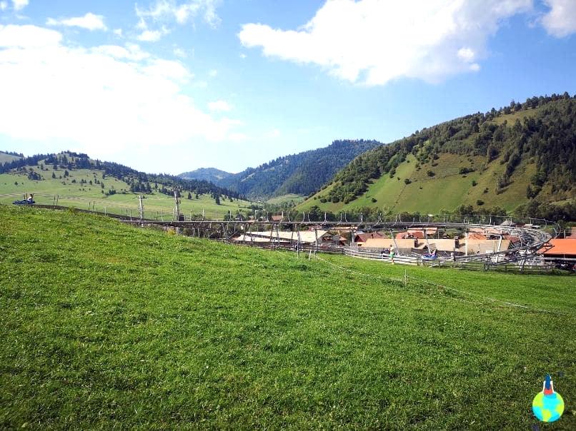 Punctul maxim al pistei de la SkiGyimes, marcat de o cabană cu terasă panoramică, este locul de unde începe adevărata aventură. Bobul pornește pe un circuit spectaculos, presărat cu multe curbe, un tunel și zone în care se poate atinge viteză mai mare.