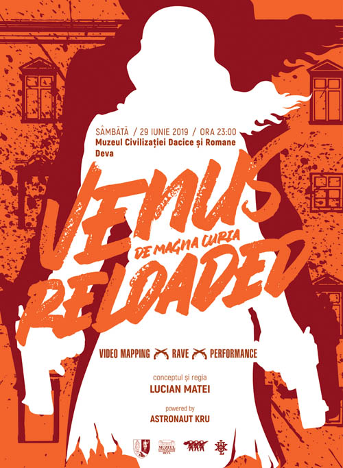 Muzeul Civilizaţiei Dacice şi Romane Deva, cu sprijinul Consiliului Judeţean Hunedoara, în parteneriat cu Astronaut Kru (comunitate soundsystem Deva) vă invită să luaţi parte la un eveniment cultural diferit, Venus de Magna Curia Reloaded, un spectacol neconvenţional de proiecţie cartată, bazat pe fapte istorice locale, cu un sound care îmbină nuanţa medievală, prin instrumentul autentic caval, şi elemente muzicale actuale: techno, tekno, hip-hop, culturi muzicale care domină prezentul.