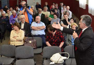 Aproape 100 de săteni s-au adunat, ieri, la Căminul Cultural din Băcia, ca să participe la dezbaterea publică privind construcţia gropii ecologice de gunoi. Oamenii au venit cu mic cu mare, pentru a-şi spune oful legat de această investiţie, iar mulţi dintre ei au purtat tricouri pe care scria „Spunem NU gunoaielor în Băcia”. „Nu la noi, groapă de gunoi”, au strigat sătenii, în cor. La dezbatere, s-a cerut chiar şi demisia edilului şef, din cauză că acceptă groapa de gunoi, iar unii dintre săteni au solicitat să se organizeze un referendum care să ducă la demiterea primarului Nicolae Panţa. La dezbatere, a fost prezent şi primarul comunei Băcia, care pe tot parcursul discuţiilor, a afişat un zâmbet în colţul gurii.