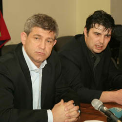 Ieri, primarul municipiului Hunedoara, Ovidiu Hada (foto stânga), şi viceprimarul Robert Dan (foto dreapta), trimişi în judecată de procurorii DNA pentru mai multe fapte privind achiziţiile publice, au declarat, într-o conferinţă de presă, că sunt nevinovaţi şi că ei sunt cei care au sesizat, prima oară, mai multe nereguli ce ar fi avut loc la Biroul de Achiziţii din cadrul Primăriei Hunedoara.