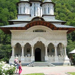 Sute de credincioşi, la Mânăstirea Lainici