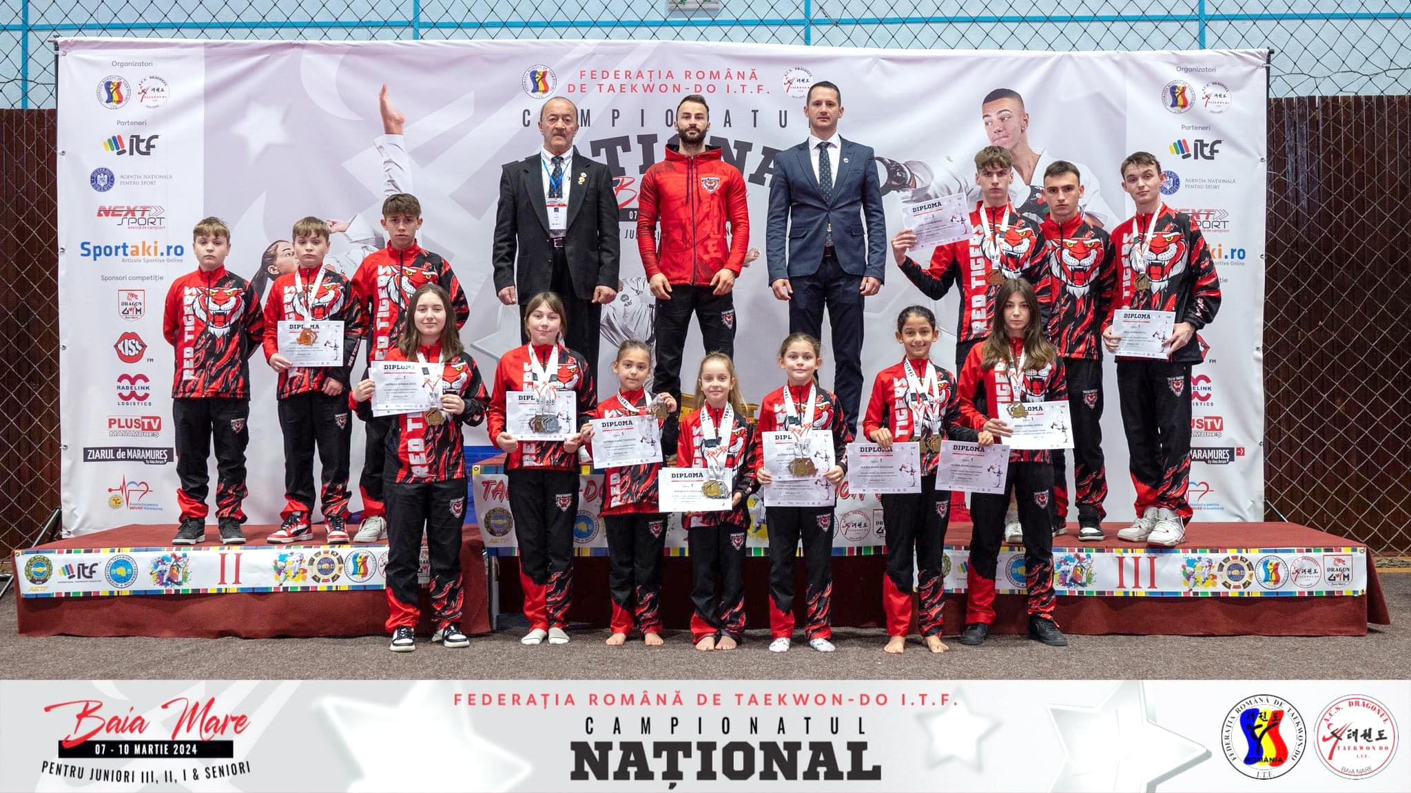 Luptătorii de la Red Tigers Călan pregătiți de prof. Cristian Popa au obținut 14 medalii, patru de aur, trei de argint și șapte de bronz la Campionatele Naționale de Taekwon-do.