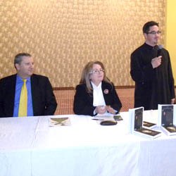 „În ciuda tinereţii sale, la cei 34 de ani, preotul doctor Dorin Costescu aduce în bibliografia românească dedicată filosofului Immanuel Kant o lucrare ce stă cu cinste alături de exegeze serioase semnate de mari filosofi români. Cei care vor citi această carte vor vedea, pe lângă consistenţa ideilor şi a abordărilor privind filosofia kantiană, uriaşul efort de documentare făcut de autor, numeroasele lucrări consultate şi autorii studiaţi, de la Aristotel, Toma D’Aquino, Sfinţii Dionisie Areopagitul şi Maxim Mărturisitorul, trecând prin Heinrich Heine, la Martin Heidegger, Ludwig Wittgenstein şi P. P. Negulescu. Volumul este o analiză profundă a întregului sistem filosofic kantian, a eternelor întrebări despre lume, existenţă, Dumnezeu, morală. Este o punere în lumină a căutării Divinităţii, a acelui Dumnezeu care este o necesitate şi care aduce «dreptatea supremă». În concepţia autorului, «dacă filosofia kantiană va fi urmărită fără elementele teologiei sale, i se va fragmenta adevărul», iar cartea tocmai acest lucru încearcă să-l evite şi, deci, analizează concomitent filosofia şi teologia marelui filosof Immanuel Kant. Desigur, pentru a înţelege aşa cum se cuvine o carte de o asemenea ţinută, este nevoie de o pregătire intelectuală deosebită, de o familiarizare cu principalele categorii filosofice, cu marile sisteme de gândire, pentru a descifra semnificaţiile categoriilor cu care operează autorul. Îi urăm succes în continuare şi îl aşteptăm, cu drag, la o nouă lansare”, a declarat Sebastian Bara (foto stânga), managerul Bibliotecii Judeţene.