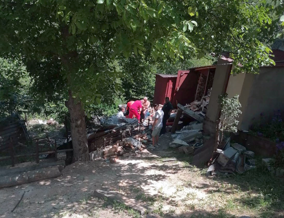 Două persoane, soț și soție, au fost surprinse de căderea zidului care susținea o anexă aflată în curtea gospodăriei lor din localitatea Ghelari.