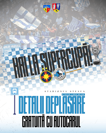 Primăria Hunedoara și Consiliul Județean Hunedoara asigură transportul GRATUIT, cu autocarul, pentru 1.000 de suporteri care au bilete la Supercupa României, cu FCSB, în data de 4 iulie, pe Arena „Steaua”!