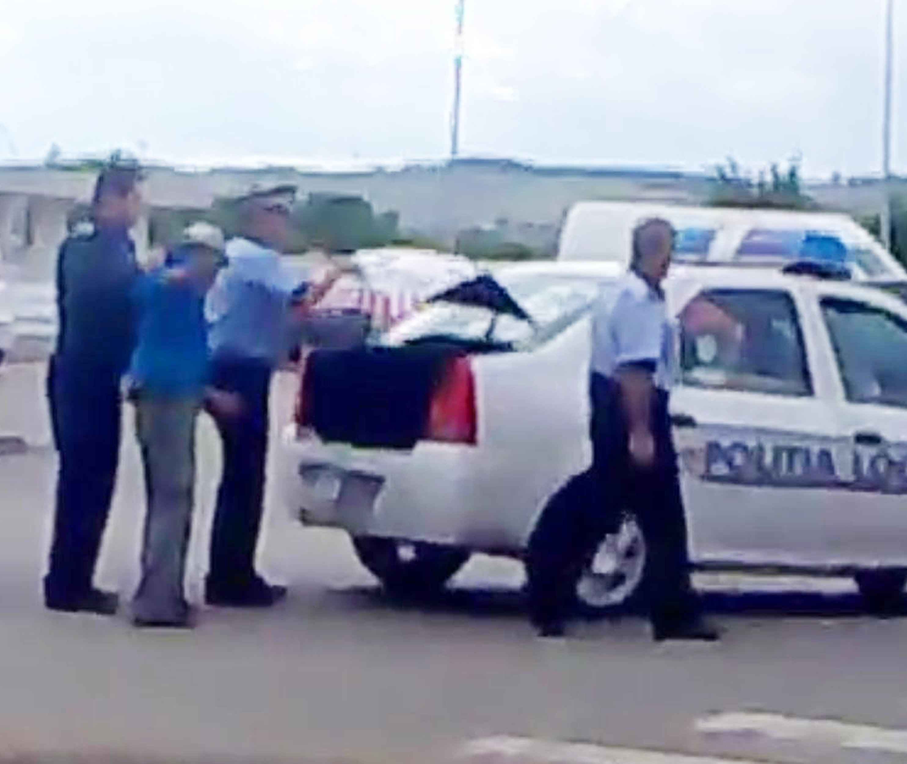 Trei poliţişti, dintre care doi de la locală şi unul de la naţională, sunt protagoniştii unui filmuleţ care face ravagii pe Internet. Aceştia au fost surprinşi de un amator în timp ce se chinuiau să bage în portbagajul autoturismului poliţiei un bărbat certat cu legea.