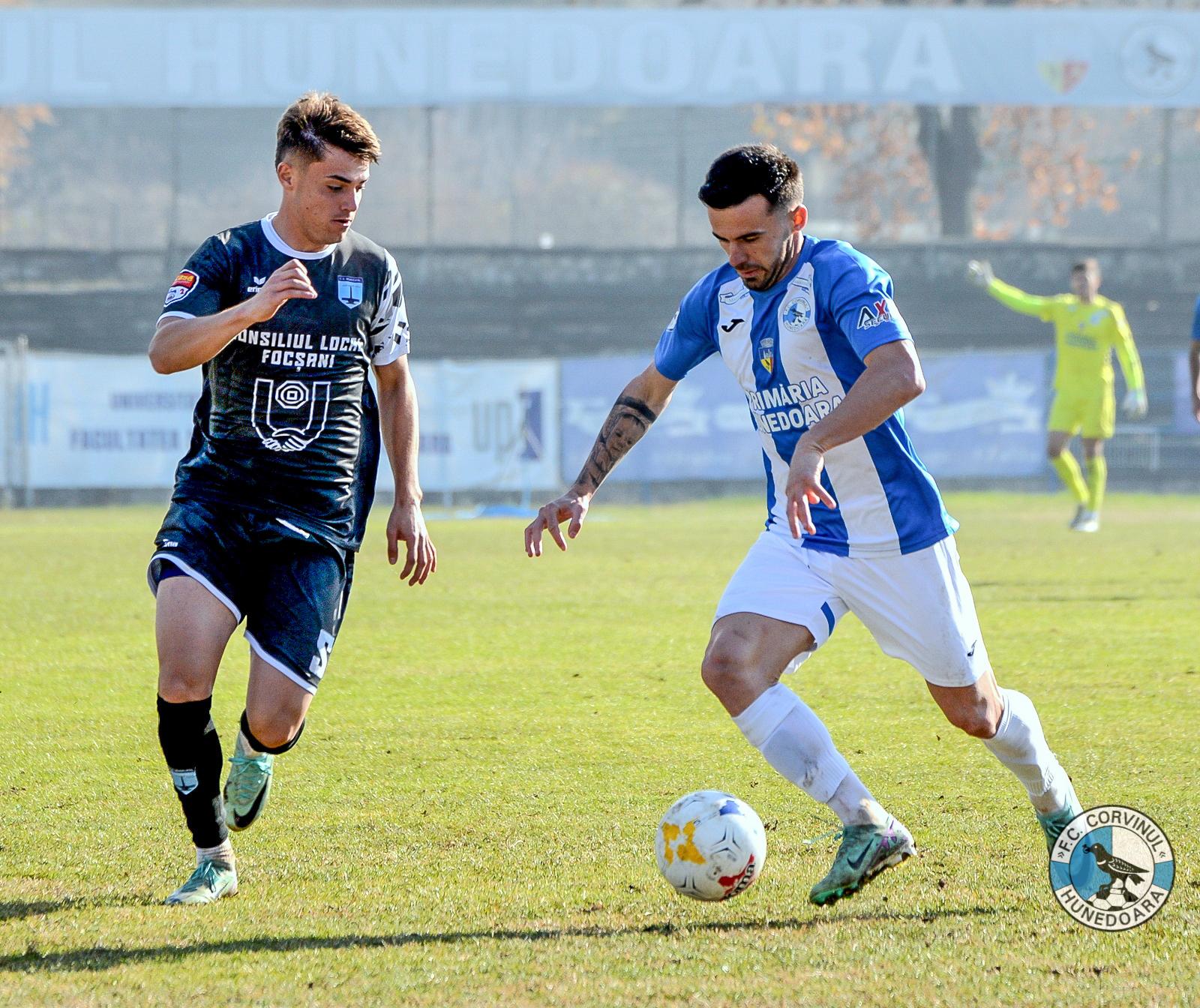 Corviniştii au bifat al doilea succes consecutiv în campionat, după 3-2 (2-0) cu CSM Focşani. Cu o evoluţie convingătoare, mai ales în prima repriză, echipa noastră şi-a făcut meciul uşor încă din primele minute, dar şi l-au complicat în actul secund, golul victoriei venind în minutele suplimentare, de la Alexandru Gîrbiţă, aflat la prima sa reuşită în alb-albastru!