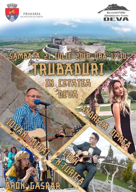 Trubadurii, cum se numeau poeţii-cântăreţi medievali, dădeau pe vremuri glas poveştilor despre cavalerism şi dragoste. Timp de două ore, trubadurii vremurilor noastre vor face ca locurile încărcate de istorie să răsune în acordurile chitarelor. Spectacolul va fi susţinut de către unii dintre cei mai buni interpreţi de muzică folk din judeţul Hunedoara: Mihai Iovan, Andreea Oprea, Aron Gaspar şi Erik N. Turică. Ei vor cânta piese compoziţie proprie, cât şi din repertoriul naţional şi internaţional.