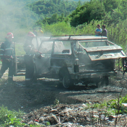 Şoferul unui ARO 10 şi-a văzut maşina distrusă în numai câteva minute. Autoturismul a luat foc în mers, pe dealul din apropierea Staţiei CFR Livezeni din Petroşani, iar şoferul a oprit şi a încercat să stingă flăcările, însă nu a reuşit. A cerut ajutor prin Serviciul de Urgenţă 112, iar pompierii ajunşi la faţa locului în doar câteva minute au stins focul imediat, dar nu au mai putut salva autoturismul. Acesta a fost distrus aproape în întregime, iar şoferul le-a spus militarilor că a văzut cum iese fum de sub autovehicul şi a încercat să stingă focul cu extinctorul maşinii. Nu a reuşit, şi flăcările au cuprins compartimentul motorului, unde erau substanţe uşor inflamabile care au înteţit focul. Bărbatul era în autoturism împreună cu soţia sa, însă, din fericire, nimeni nu a fost rănit. (M. Gânju)