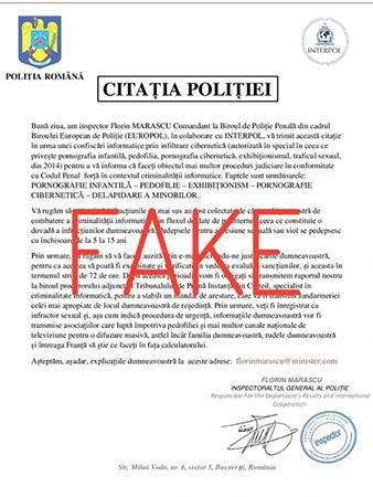 Mai multe persoane au primit email-uri în care li se cereau bani.Ofițerii Poliției Române atrag atenția că s-au primit mai multe plângeri de la oameni care ar fi fost escrocați de bani printr-un tip de înșelăciune online. Astfel, infractorii trimit înștiințări prin e-mail în care pretind că sunt ofițeri de la Europol, Interpol, FBI sau Poliția Română și trimit email-uri în care le spun victimelor că au de plătit o amendă pentru că ar fi intrat pe site-uri periculoase, cu caracter sexual explicit cu minori.
