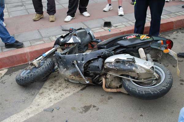 Un adolescent de 16 ani conducea un scuter, iar un şofer nu i-a acordat prioritate şi l-a proiectat într-o altă maşină oprită la un semafor.