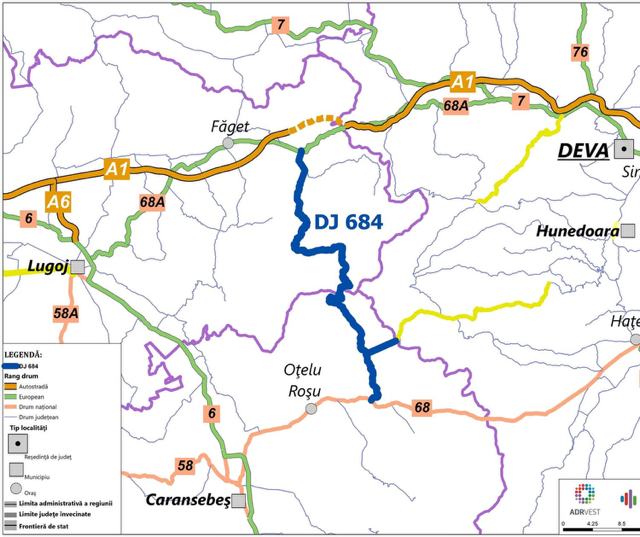 Trei județe – Caraș-Severin, Timiș și Hunedoara – vor fi interconectate printr-un proiect european în valoare totală de aproape 90 de milioane de euro, pentru modernizarea Drumului Județean 684.