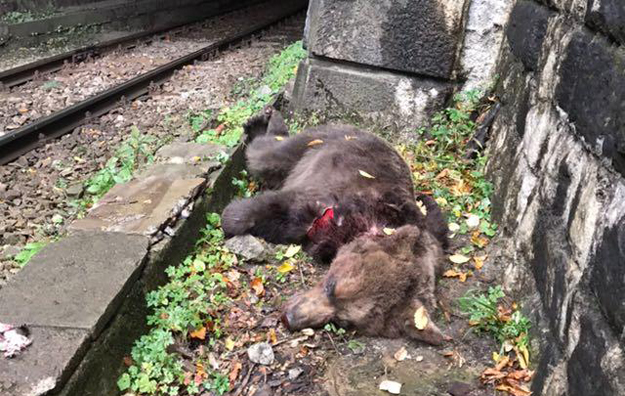 Un urs tânăr, despre care se presupune că a fost hăituit de câini şi împins către linia ferată, a fost lovit de locomotiva unui tren şi omorât.